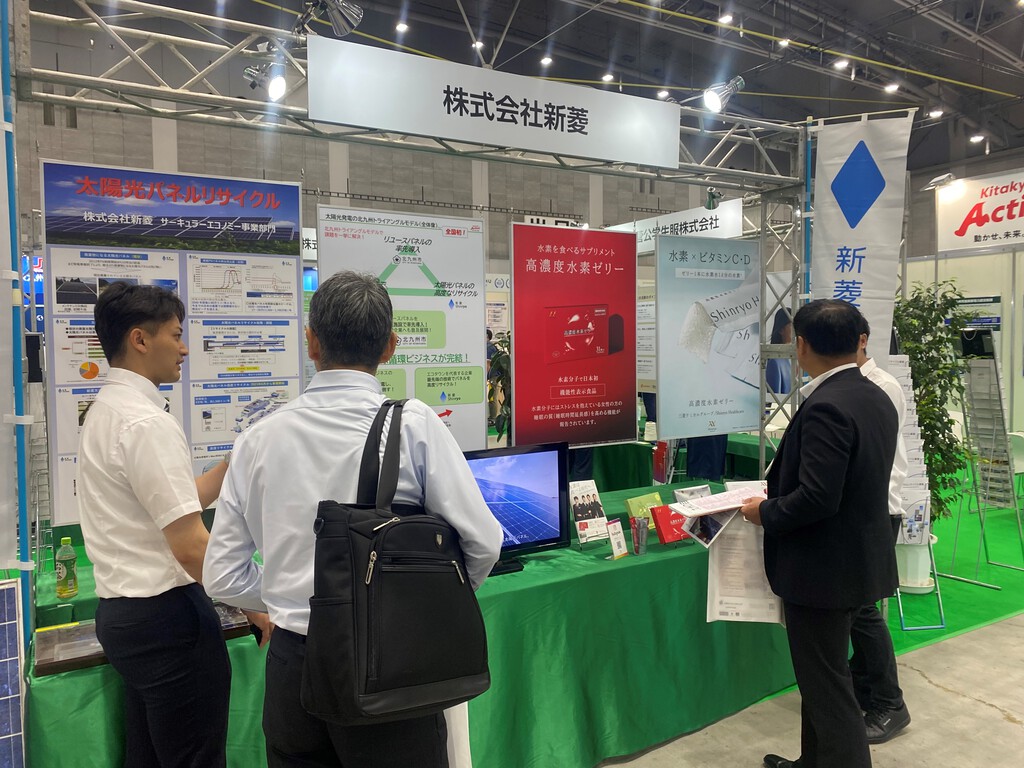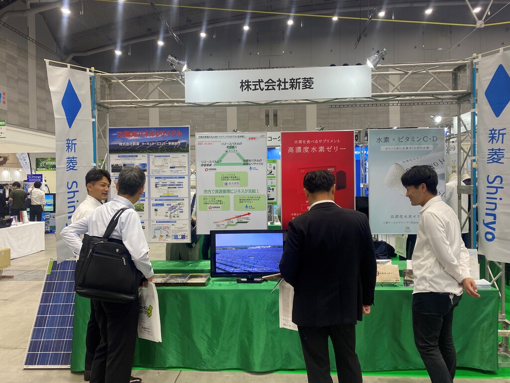 今年度は、北九州市ブースの一部で太陽光パネルリサイクル・リユースの出展をさせて頂き、沢山の方にお越しいただきました。